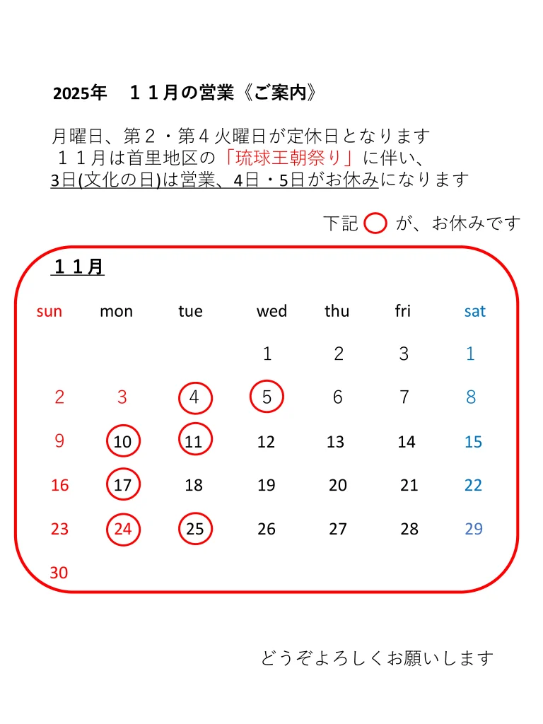 2025年11月の営業《ご案内》
