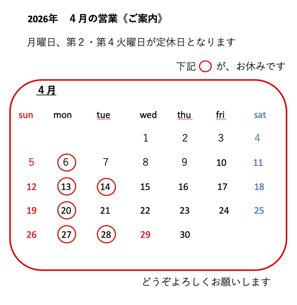2026年4月の営業《ご案内》